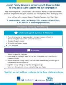 Amy Rosenberg, MSW, a Jewish Family Service Social Worker, will provide members access to comprehensive support, education and training during these challenging times.